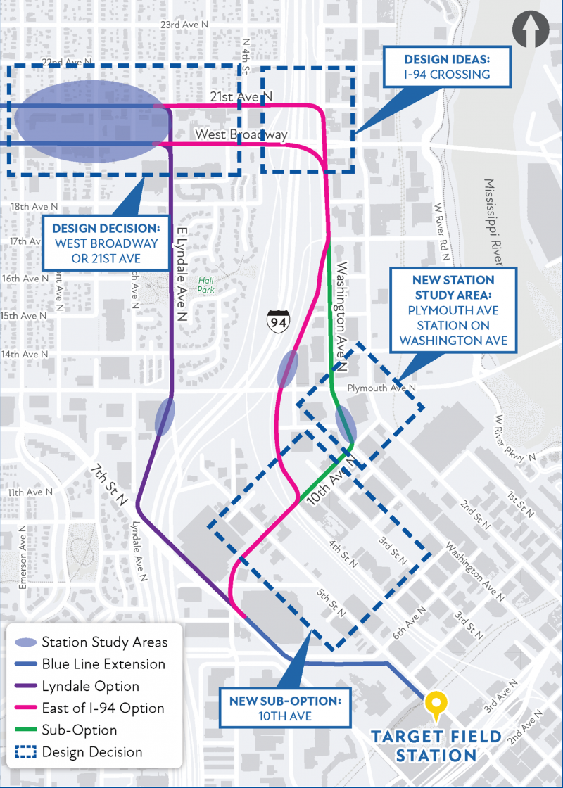The METRO Blue Line Extension project is evaluating several route options between Target Field Station and West Broadway Ave. In response to community feedback …